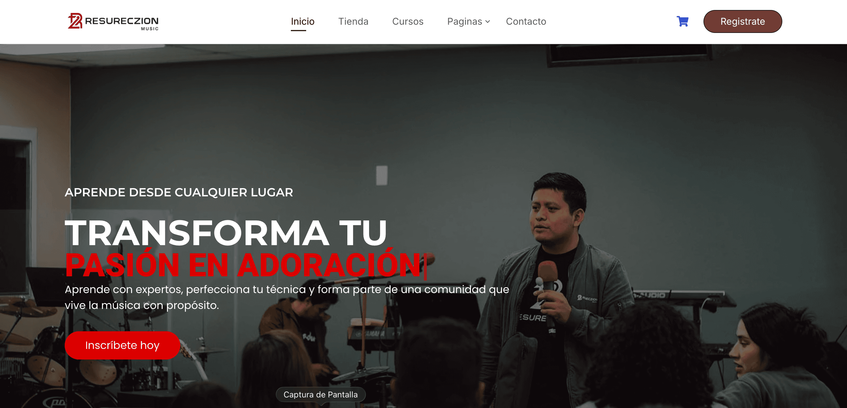Resureczion Music es una academia enfocada en la formación musical integral. Aunque contaban con talento, visión y estructura académica, su presencia digital no reflejaba el nivel profesional que ofrecían. La falta de una identidad sólida y una plataforma clara generaba confusión en la comunicación y limitaba su crecimiento.